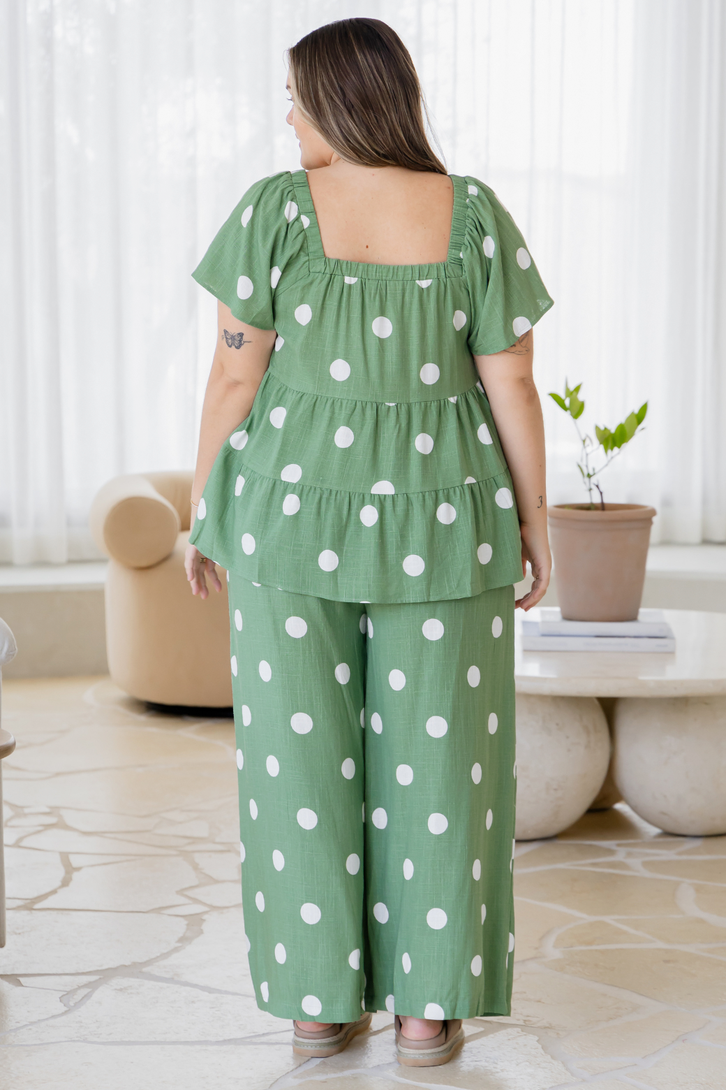 These beauties bring all the good vibes with a soft sage green base sprinkled in the cutest white polka dots. They’re made for coffee dates and market stroll moments.