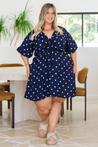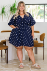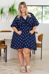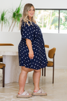 The Erica dress in Navy Spot, your everyday essential redefined. Perfect for casual mornings, busy afternoons, or laid-back weekends, it blends effortless comfort with easy style!