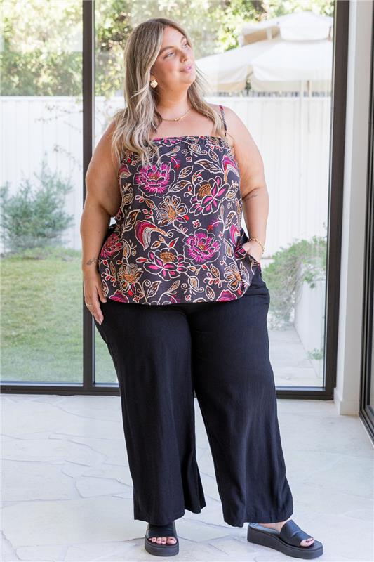 Love this top, I sized up from a 14 to a 16 and it fits perfectly. Strap placement is great, drape is great. Pattern is beautiful and will go with so many colours on ym wardrobe.