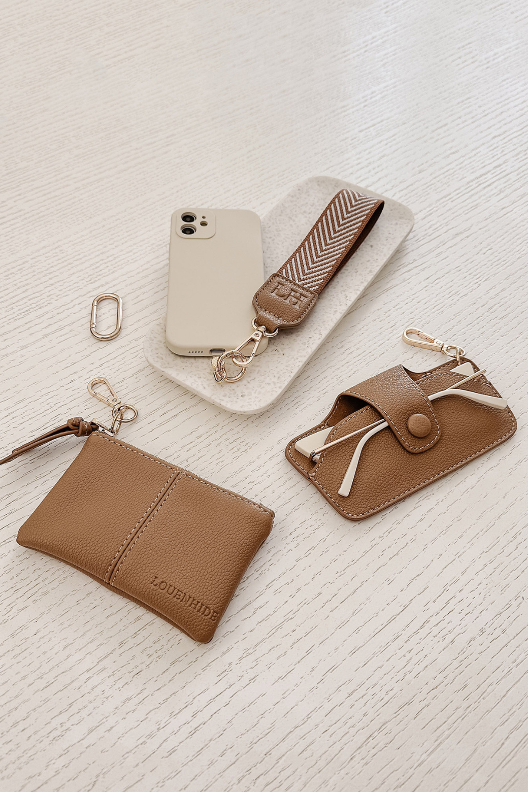 The Ziggy Camel Accessory Bundle is a sleek and practical essentials kit, perfectly sized for your handbag and designed to simplify your daily routine. This thoughtfully curated set brings together four versatile accessories in one stylish bundle, all held securely in place with a Caribou clip for easy organisation!