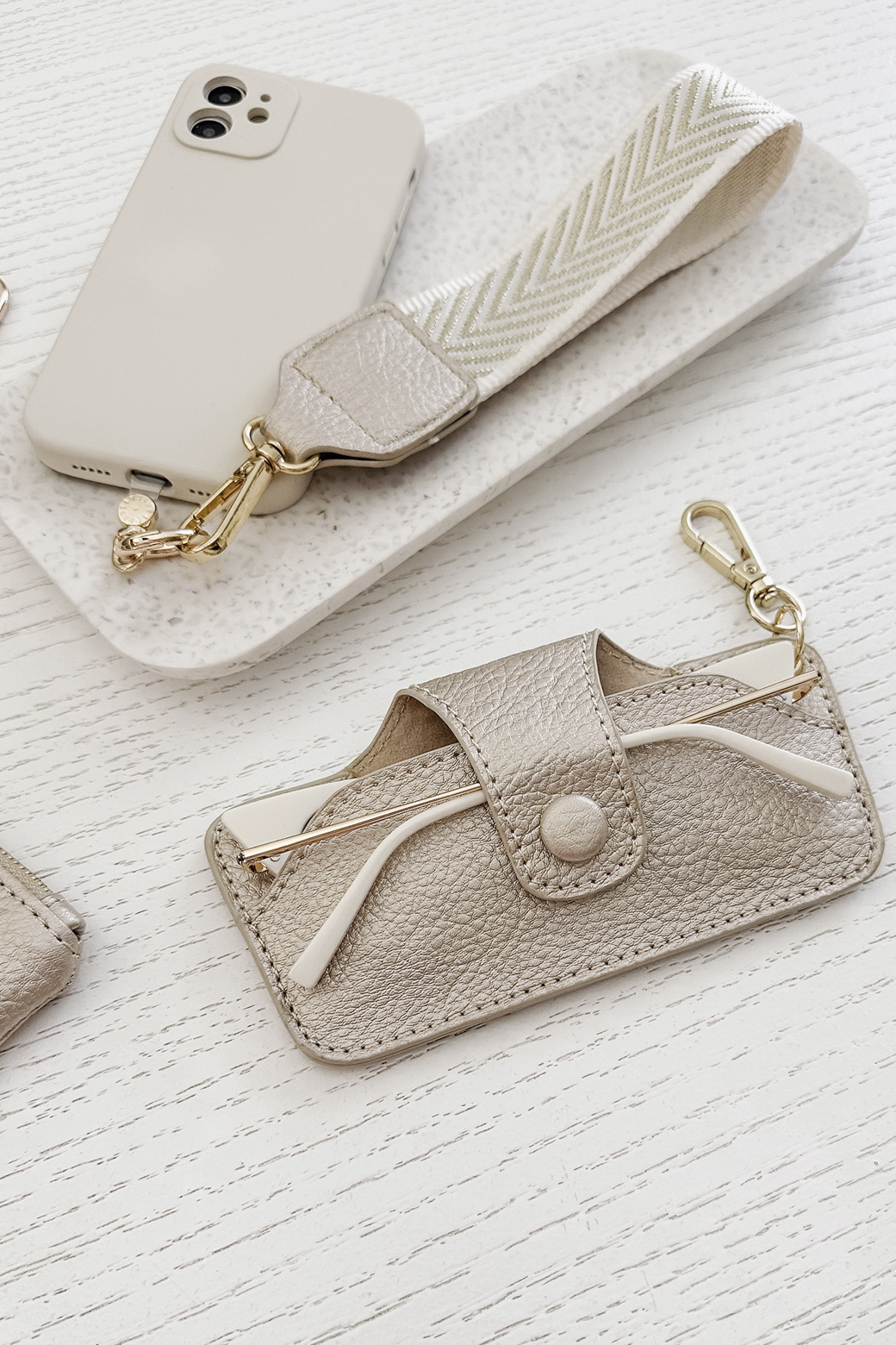 Includes: Sunglass Case, Plastic Phone Converter Clip, Purse, Wristlet, Carabiner Clip