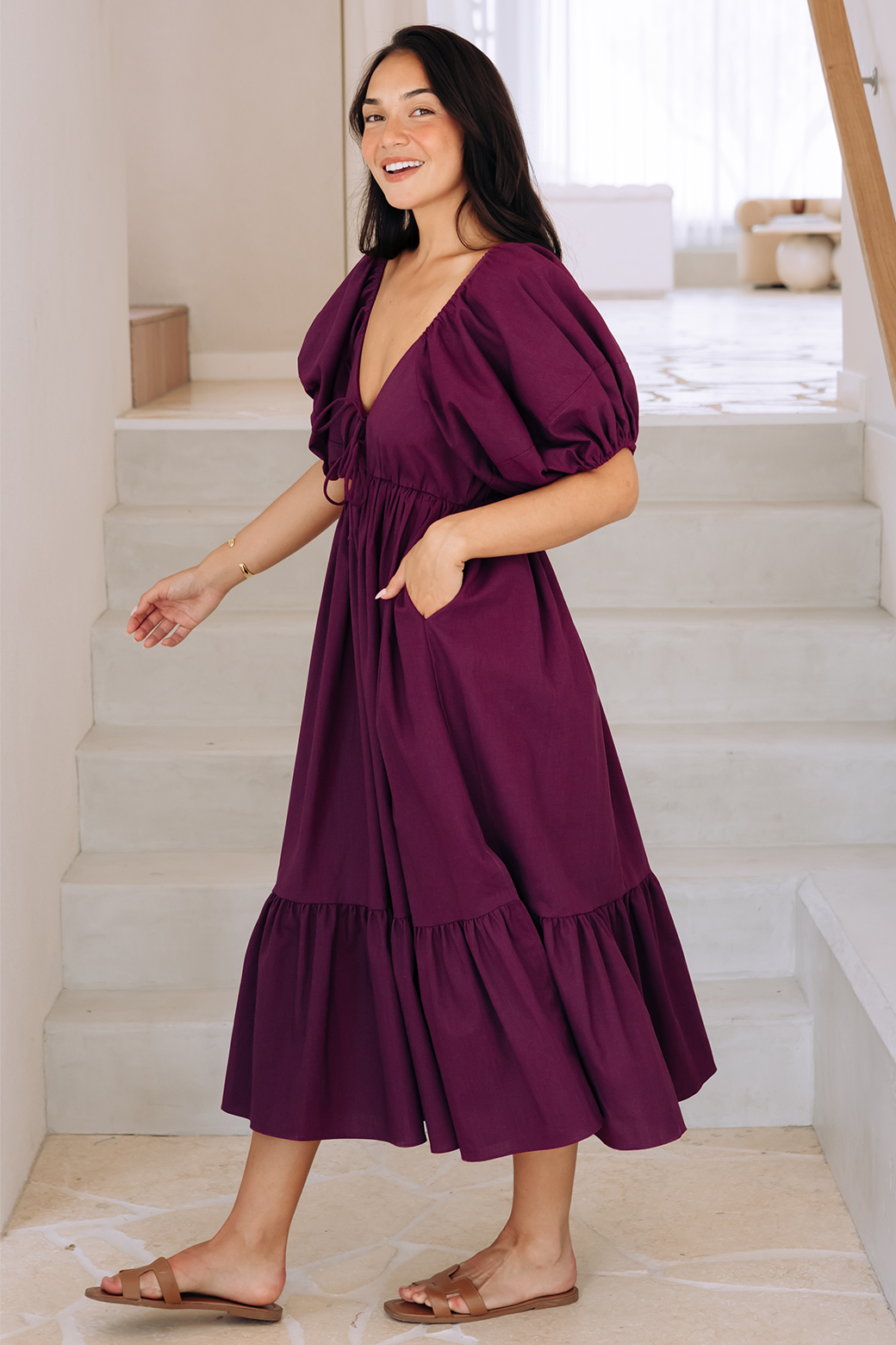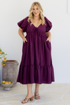 The stunning Mikayla Midi Dress in Orchid Purple is perfect for any occasion! With its flattering v-neckline, bust tie detail, and cute puff sleeves, this gorgeous midi dress is a total showstopper!