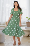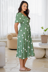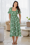 Hello effortlessly composed, hello wardrobe hero! Meet the Olivia Midi Dress in Sage Spot, where soft green tones meet flirty white spots!