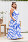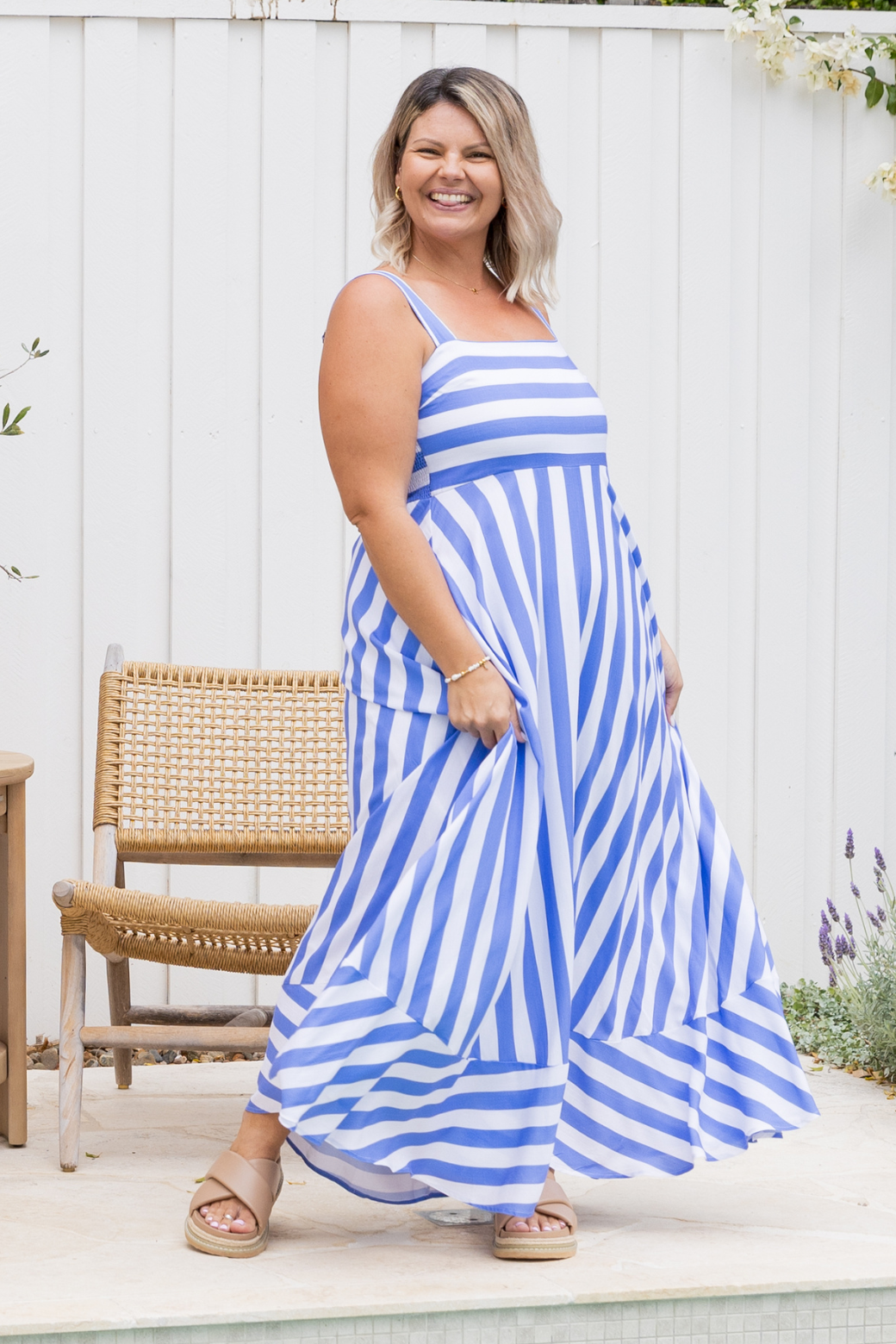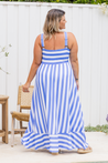 The Primrose Maxi Dress is back in this dreamy blue and white stripe! It's a classic print that will never go out of style. The square neck and flowy skirt is flattering on every body type - the Primrose is going to be a staple in your wardrobe!
