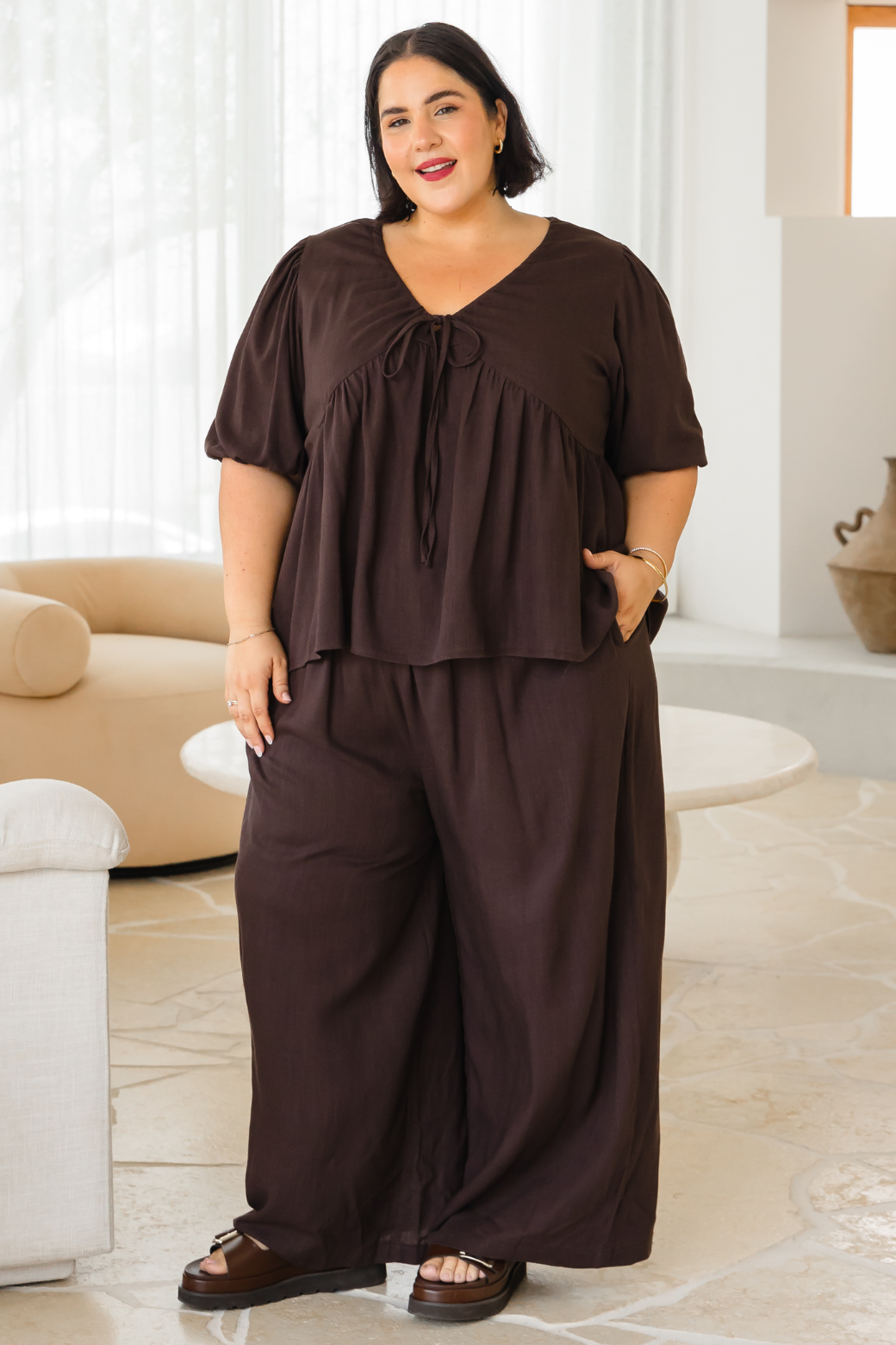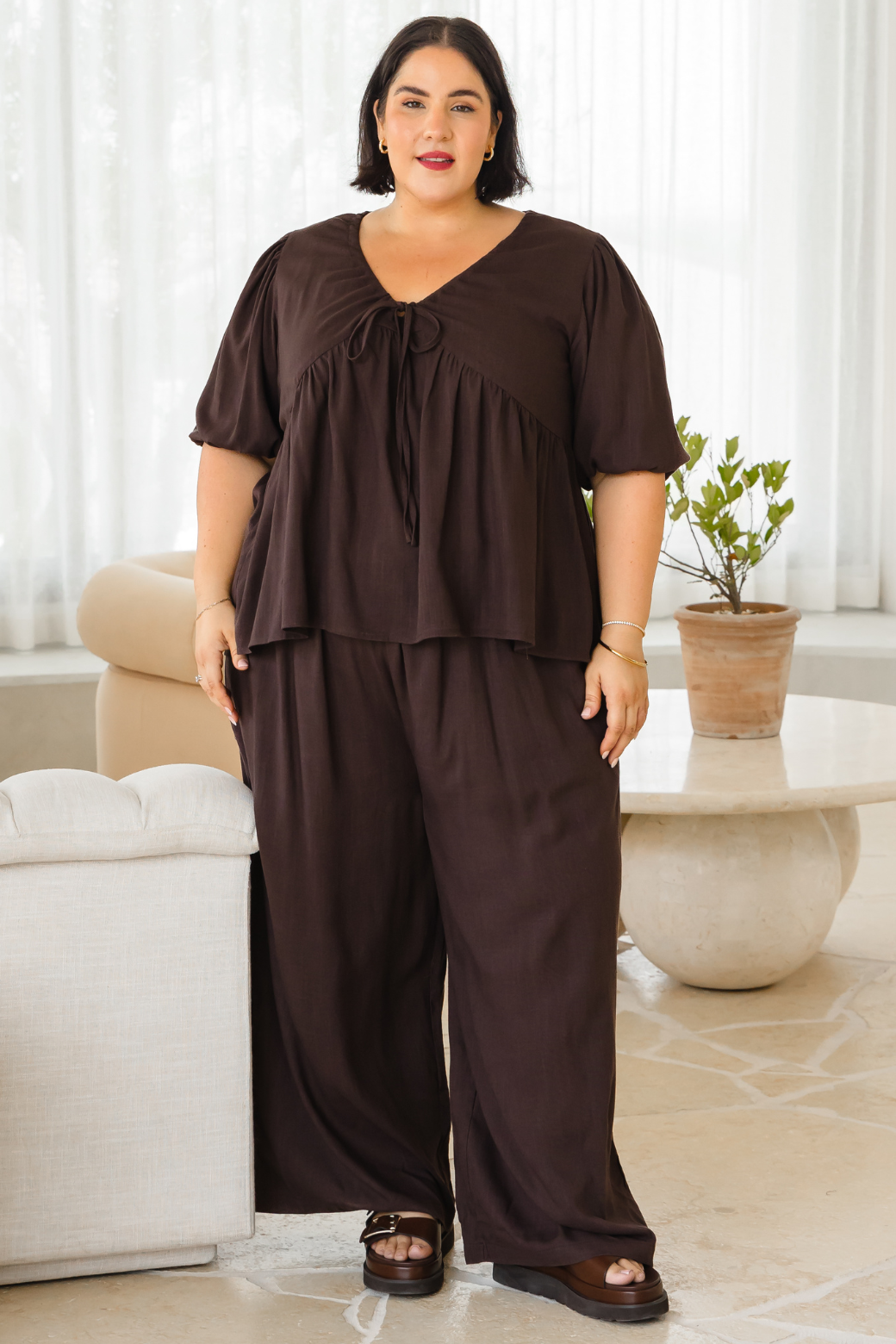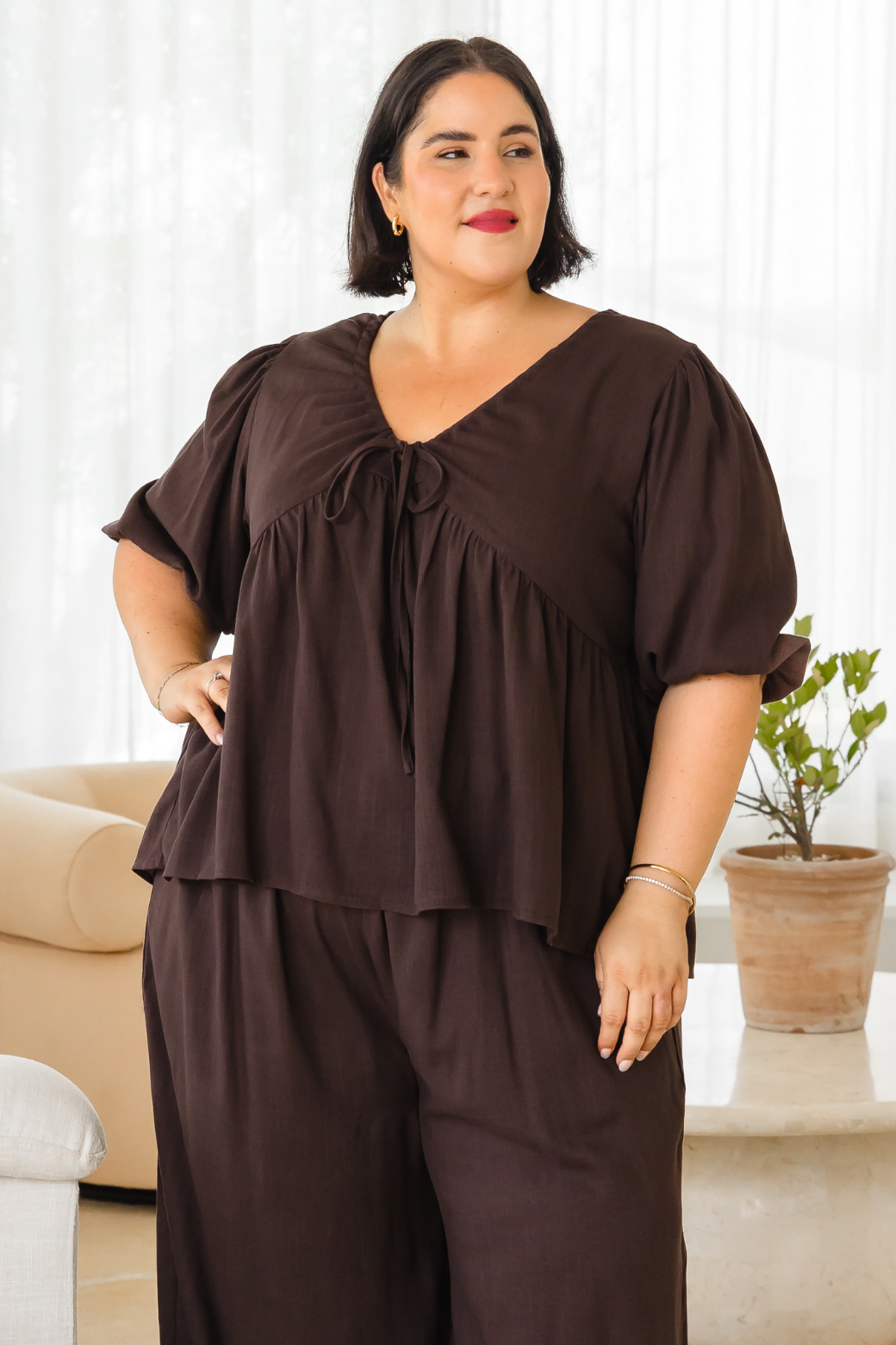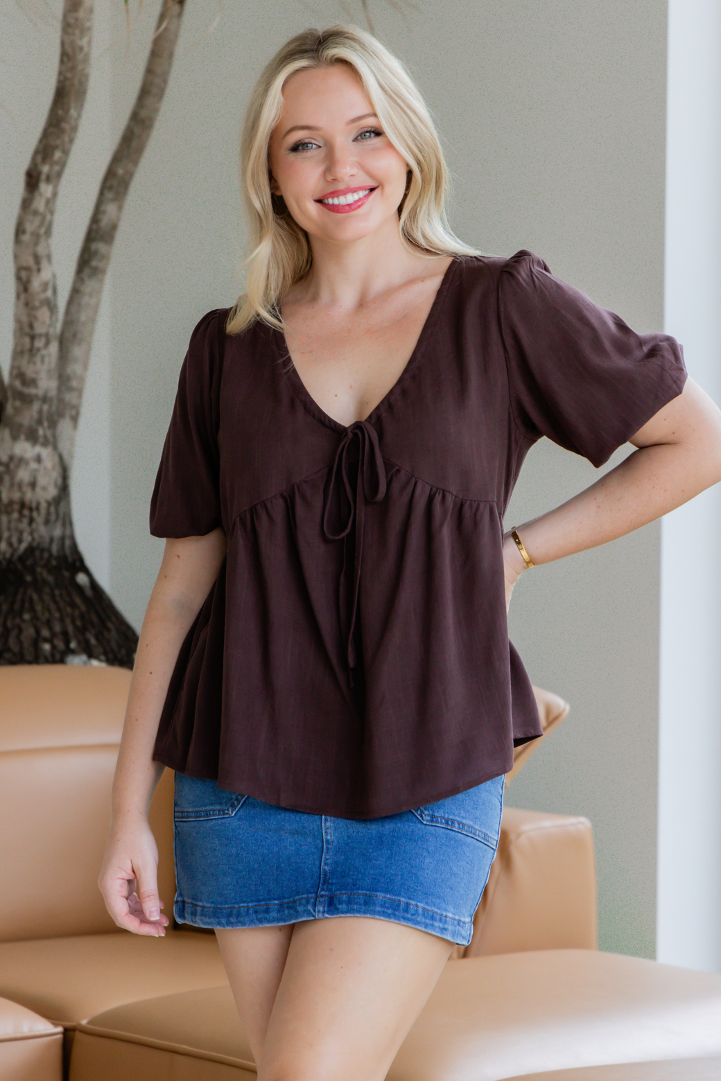 Bold yet refined, the Siren Top in rich bitter chocolate features a flattering silhouette that elevates any look with effortless style!