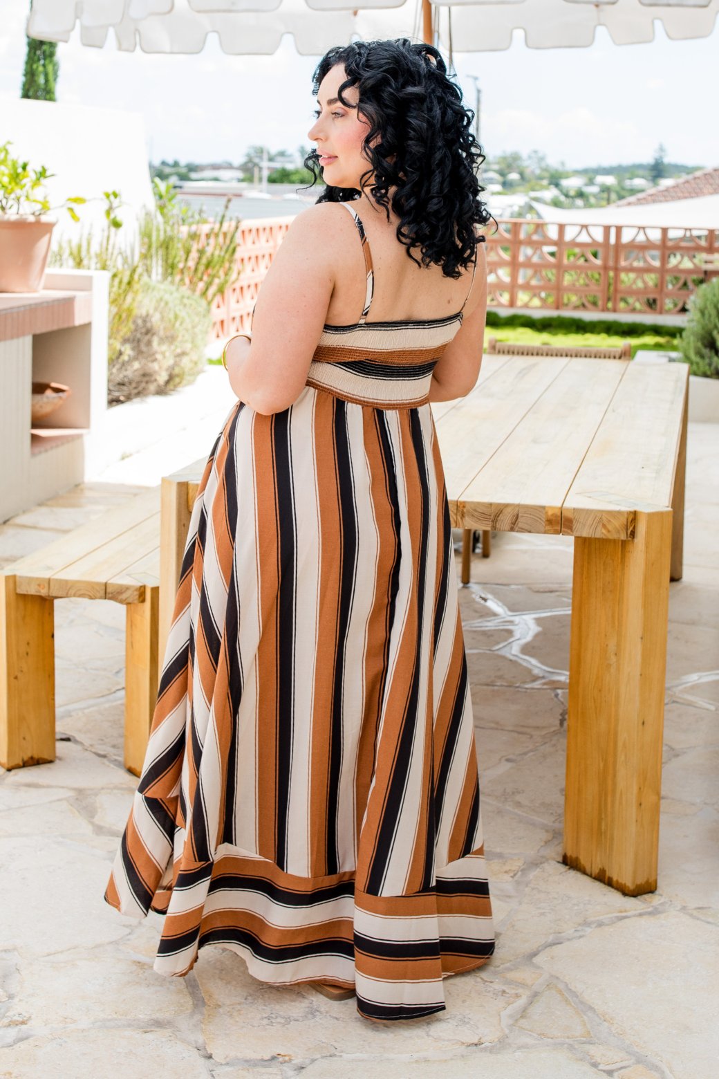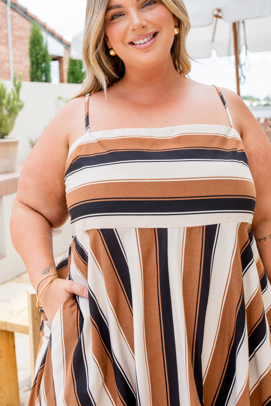 Flowy, flattering, and made for sunshine, this statement maxi brings effortless charm to every occasion. The timeless cabana stripes and easy silhouette create a look that’s both relaxed and refined!