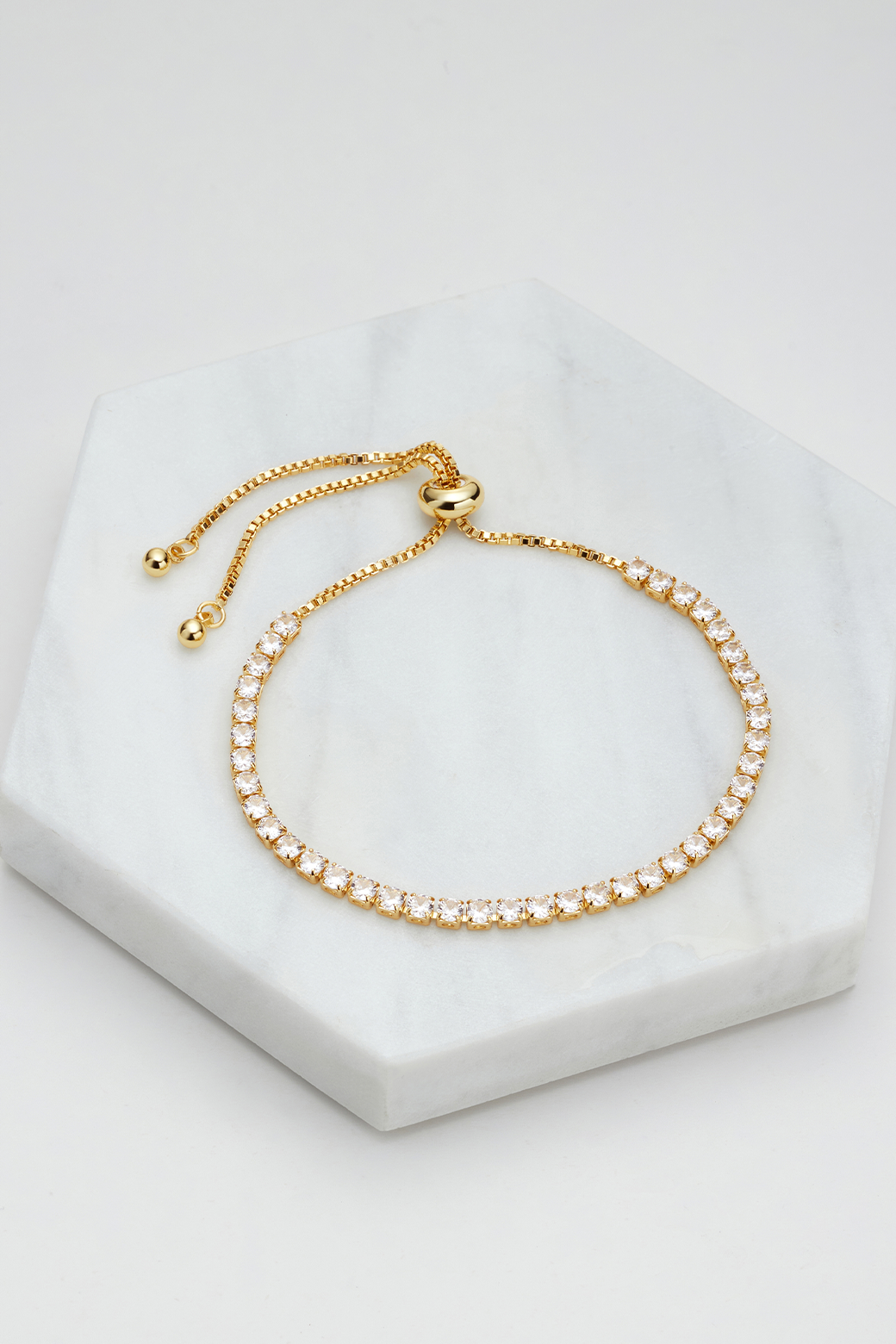 The perfect choice for those seeking a luxe look without breaking the bank. This bracelet boasts a timeless design with a row of sparkling crystals, exuding elegance and sophistication.
